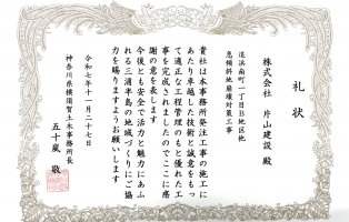 【表彰】神奈川県横須賀土木事務所長賞受賞(土木工事3件)