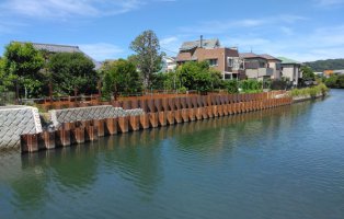 今回は既設護岸の補強とし擁壁護岸(もたれ式擁壁)を施しました。
